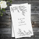 Una minimalista servilleta de boda blanco y negro con una viñeta de rosas dibujada a mano en blanco y negro.