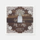 Decoren su rústico país, o fiesta de bodas de granero inspirada en el aliento del bebé con estas adorables servilletas de papel boda floridas con un aliento de bebé dentro de un frasco de albañilería contra un fondo rústico de madera adornado con encajes florales blancos y luces de cuerdas. Personalice fácilmente las servilletas del aliento de este bebé para complementar a su boda rústico, ducha de novia o fiesta de cena de ensayo.