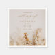 Una servilleta de boda de otoño romántica y moderna con foto realista que presenta un ramo floral neutro seco en tonos de trigo, ocre y herrumbre. Ideal para la hora del cóctel.