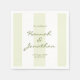 Establece el tono de tu día especial con esta servilleta de boda atemporal y sofisticada que presenta franjas verticales verdes suaves y una tipografía manuscrita informal. La delicada paleta de colores crea un ambiente fresco y romántico, perfecto para una ubicación al aire libre en verano.