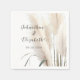 Este diseño de servilletas presenta pasto pampas con escritura elegante y tipografía. Perfecto para la pareja que quiere un diseño de moda costera para su boda. Personalice con los nombres del novio y la novia y la fecha del boda de una servilleta por su cuenta.