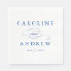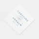 Una servilleta boda clásica con los nombres de las parejas y un guión elegante de caligrafía y con la fecha del evento.