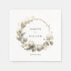 Añada un toque de encanto ecológico suave a la recepción de su boda con estas servilletas de corona de algodón y eucalipto. Esta servilleta de papel muestra una guirnalda rústica, no simétrica, de frascos y eucaliptos delicados de acuarela, personalizada con los nombres de la novia y del novio y la fecha boda debajo. Es una adición perfecta a tu celebración, infundiendo la belleza natural del algodón suave y la acuarela en todos los lugares.