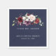 Ramo de flores en rosa de vino tinto con tipografía moderna para servilletas de papel azul marino para la ducha nupcial de la futura Sra.