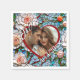 Toallas de cóctel personalizadas para una recepción nupcial o para una cena de ensayo con las iniciales de la novia y el novio, fecha de boda y foto. ... Un magnífico ilustracion que imita un mosaico de cristal y baldosas de rosas de coral y con acentos azules y otros colores.