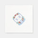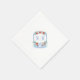 Este diseño de servilletas para fiesta de boda o cena de ensayo presenta un escudo de armas de boda pintado a mano en rojo, verde y azul, con las iniciales de los futuros cónyuges, junto con espacio para la fecha del evento.