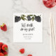 Servilletas de papel para boda de novia con tema de flores negras góticas con ilustración de rosas negras sobre fondo blanco. Perfecto para tu celebración de Halloween. El texto dice "hasta que la muerte nos separe".