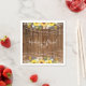 Rústica Cadena De Girasol Ilustra La Napkin Boda. Este diseño se caracteriza por los girasoles de bonito que se encuentran en un marco rústico de madera con luces de cuerda brillantes. Personalice este diseño personalizado con el nombre de la novia y del novio y la fecha del boda.