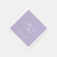 Servilletas de boda para una boda con color de boda lavanda. Solo texto blanco sobre fondo morado lavanda. Las palabras "Sr. & Sra." están escritas en una elegante letra caligráfica, los nombres de la novia y el novio y la fecha en letras mayúsculas más pequeñas.