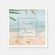 Un diseño hermoso y perfecto para bodas de playa, costa, verano o océano, o un boda tropical en el Caribe, o cualquier boda de playa, crea una inolvidable y cautivadora introducción a tu día especial. Los nombres de la pareja añaden un toque único y cálido que los huéspedes seguramente recordarán.