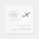 Servilletas personalizadas con logotipo de boda con tema de viaje personalizado dentro de un rastro de avión en forma de corazón, perfecto para una ducha nupcial con tema de viaje, cena de ensayo o cóctel de boda de destino. Agregue su ciudad de boda como el lugar "donde comienza la aventura" y muestre servilletas de cóctel lindas y con tema de viaje en una ducha o cena de ensayo.