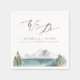 Esta servilleta boda cuenta con una pintura bohemia acuática en el lago montañoso y un elegante tipo de letra caligráfica. Esta es la servilleta perfecta para cualquier temporada.