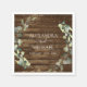 Eucalyptus Greenery Suculent Botanical Watercolor Primavera Napkins sobre el fondo rústico de la madera de campo al aire libre - incluye una tipografía de escritura hermosa y elegante con hojas botánicas modernas y vegetación para la celebración especial del Día de la Boda.