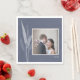 Agregue un toque personal a su recepción de boda con esta elegante servilleta de papel con foto personalizada. Diseñada con un romántico fondo gris azulado, delicada ilustración botánica blanca y espacio para una foto favorita y fecha de boda, es una hermosa mezcla de diseño moderno e inspirado en la naturaleza. Perfecta para bodas rústicas, de jardín o al aire libre y fácilmente personalizable para que coincida con su tema.