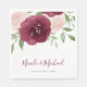 Elegantes servilletas de papel de flores acuarela borgoña para boda. Personalice fácilmente con los nombres de la novia y el novio y la fecha de la boda.