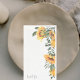 Servilleta de invitado de boda floral de girasol al agua en cascada. Fondo blanco. Nombres de la pareja.
