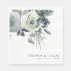Hermosas servilletas de bodas de invierno con un ramo de flores color azul marino y blanco, bayas azules y hojas verdes. Personalice su nombre y fecha de boda.