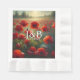 Aceite rojo de bonito pintó amapolas con el sol iluminándolas. Tonos rojos y verdes. Toallas de papel personalizadas para la cena de ensayo, la recepción de boda o la ducha de novia. iniciales de novia y novio y fecha de boda.