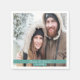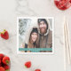 Una servilleta para un elegante - verde, verde o tema de boda de invierno o fiesta de compromiso. Plantilla para su foto, un marco de color verde con plantillas para Sus nombres y una fecha. Letras blancas.