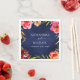 Las servilletas de recepción de la Boda Primaria de la Floral Azul de la Marina - incluyen tipografía de escritura hermosa y elegante con hojas botánicas modernas, flores rosadas y rojas de Rubor y vegetación para la celebración especial del Día de la Boda.