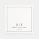 La moderna Boda Monograma Minimalista Napkin con iniciales y nombres de parejas y la fecha debajo son las características de esta servilleta de papel de la hora de coctelería de la recepción de bodas.