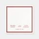 Moda intemporal, elegante y sin esfuerzo: estas servilletas bodas rojas están diseñadas para parejas que aman la simplicidad clásica. Con una tipografía limpia y un diseño mínimo, esta invitación resalta los detalles de su boda con sofisticación y facilidad. Perfecto para los bodas modernos, tradicionales o formales, este diseño combina a la perfección con cualquier combinación de colores o estilo boda.