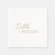 Toallas modernas de boda de oro falso con un diseño sencillo y mínimo con el nombre de la novia en un guión elegante y el nombre del novio en un tipo de letra sans serif contemporánea. Estas servilletas de estilo minimalista son una gran incorporación a la recepción de bodas, la fiesta de compromiso o la ducha de novia.