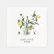 Elegantes y rústicas servilletas de papel para su boda con tipografía serif clásica y limones de verano acuarelas con vegetación en un frasco con sus monogramas.