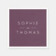 Esta servilleta boda muestra los nombres de la pareja boda en blanco contra un color morado oscuro en la parte posterior. Consulta otros elementos bodas coincidentes https://www.zazzle.com/collections/mauve_layered_geometric_dark_purple_wedding-119712420789591185?rf=238364477188679314&tc=rc . Personalízalo reemplazando el texto del marcador de posición. Para obtener más opciones como cambiar el tipo de letra, su tamaño y espaciado entre letras haga clic en el botón "Personalizar". *Tenga en cuenta que la marca de agua Zazzle que aparece en la vista previa del zoom NO aparecerá en el producto impreso final. © Rosewood y Citrus