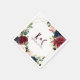 Recepción de Bodas y Nápoles de Madera Floral de Borgoña y Marina o servilletas de ducha de novia: diseño con flores y vegetación hermosamente pintadas en tonos burdeos, vino, azul marino frente a una falsa guirnalda geométrica purpurina de oro.
