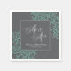 Celebra tu boda al estilo costero con hermosos corales en verde marino que contrastan con un rico fondo gris en esta preciosa servilleta boda costera. Un delgado borde gris claro rodea el texto personalizado con un estilo elegante. El emparejamiento de fuentes utiliza una atractiva combinación de escritura elegante y estilo de texto serif. Personalice el texto en la plantilla de texto fácil de usar con los nombres de la novia y del novio y la fecha de boda.