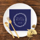 Agregue un toque personal a su boda personalizando estas servilletas con sus nombres, fecha de boda o un mensaje especial. Cree un recuerdo de su día especial que sus huéspedes podrán admirar. Con fondo azul marino y corona blanca de cuerda náutica.