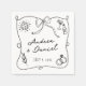 Elevar a tu boda con una divertida y peculiar servilleta boda en blanco y negro que incluye ilustraciones extravagantes y románticos de martini, cerveza, bola de disco y anillos de boda.