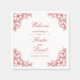 Adorne la mesa de comidas de la recepción de tu boda con estas elegantes servilletas de papel que presentan decoraciones florales ornamentadas en cada esquina. El texto y el color de fondo se pueden cambiar para adaptarlos a sus necesidades y hay otros elementos coincidentes disponibles en mi tienda para crear un evento temático.