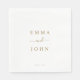 Sencillas letras minimalistas de oro sobre la servilleta de papel blanco en un estilo moderno, moda y elegante de tipografía. Perfecto para boda o fiesta de compromiso. Personalizar con nombres de pareja y fecha de boda/compromiso.