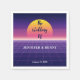 Esta servilleta boda retro de los años 80 cuenta con arte de sintonización fresco y violeta y una puesta de sol sobre las líneas de neón. Esta impresionante decoración boda temática de los años 80 es atrevida y divertida, seguro que atrapará la atención de todos y les dirá que estás tirando a un fiesta de baile.