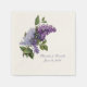 Añada un toque especial a su mesa boda de desierto, con estas servilletas románticas de papel, con gráficos de lilas moradas. Personaliza el texto morado del personalizado para tu recepción de bodas.
