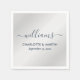Elegantes toallas de papel boda azul marino y plateado con un tipo de letra de guión moderno. Personalice fácilmente en línea con los detalles de su boda. Artículos de juego disponibles para complementar estas minimalistas y elegantes toallas de papel boda azul marino y plateado.