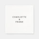 Una servilleta de papel cuadrado blanco con los nombres del recién casado en negro. Escriba ALL CAPS para lograr este efecto con este moderno y elegante tipo de letra redondeada. Personalizar el espaciado de las letras según sea necesario. Añade tu propio monograma, nombre o foto para crear un diseño personalizado y personalizado. Diseño minimalista moderno para su boda.