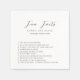 Servilletas de boda elegantes con un diseño simple con una tipografía sans serif moderna y una tipografía script elegante con una lista de datos divertidos sobre la novia y el novio.