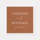 Añada un toque personalizado a su recepción de bodas, fiesta de compromiso o cena de ensayo con estas servilletas bodas de escritura modernas y personalizadas. Las servilletas de boda personalizadas muestran sus nombres y fecha de boda en letras modernas con un guión escrito a mano en blanco sobre un fondo de terracota. Las servilletas bodas de terracota, sencillas pero elegantes, son perfectas para su boda moderno.