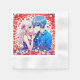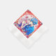 Niño animado y chica acurrucada rodeado de flores de colores. Hermosa pareja de anime, chica de pelo rosado y chico de pelo azul. Los colores son rojo, azul, blanco, rosa y violeta. Bonitos para bodas, El día de San Valentín o un aniversario.