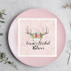 Diseño moderno con ilustración de acuarela de una calavera estilo Boho con flores de isla y follaje sobre fondo manchado de agua rosa y blanco con lunares Personaliza con el nombre de la novia
