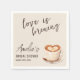 Agrega un toque elegante a tu celebración con nuestras servilletas para desayuno de novia Boho Love is Brewing Coffee. Con un diseño bohemio chic y acentos con tema de café, estas servilletas complementan perfectamente la atmósfera cálida y acogedora de tu evento. Ideales para cócteles, postres o descansos para tomar café, son suaves, absorbentes y prácticas, mientras mejoran tu decoración. Ya sea que sirvas lattes o dulces, estas servilletas aportan encanto y elegancia a tu desayuno de novia, haciendo que cada detalle sea inolvidable.
