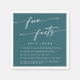 Estas toallas de diversión de boda azul de moda boho son perfectas para un boda minimalista. El audaz tono de joyería turquesa oscuro presenta un diseño bohemio moderno con una caligrafía rústica sencilla con un estilo único y clásico. Personalice sus servilletas de cóctel boda con sus nombres y algunos datos divertidos.