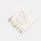 Elegant light cream baby girl shower napkins featuring "a little wildflower is on her way" written in a blend of grey typography and a stylish pink script, and boho-inspired whimsical watercolors of dainty purple, pink and yellow wildflowers. Add the name of the mother-to-be in simple pink lettering.