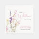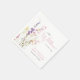 Eegant baby girl shower napkins featuring "a little wildflower is on her way" showcased in a blend of light grey typography and a whimsical pink script, and a boho-inspired watercolor bouquet of purple, pink and yellow wildflowers.