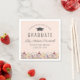 Una hermosa acuarela florida de flores silvestres decora el fondo de estas servilletas de moda de la fiesta de graduación boho. Las palabras "felicitaciones a nuestro graduado" rodean una silueta de una tradicional gorra de mortero. Personalizar el texto gris carbón en un fondo rosa rubor, con el nombre del graduado en escritura a mano y el año escolar y de clase en letra sans serif.