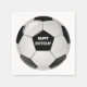 Calabazas de papel con temática deportiva, con gráficos de una pelota de fútbol en blanco y negro. Personalice el texto blanco para leer lo que desee. Se ofrecen platos de papel fiesta, favores de lata de caramelo e invitaciones.