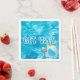 texto "mojarse" en ondulante efecto de tipo de letra para el fiesta de la piscina con cóctel y bola de playa salpicada en agua turquesa de la piscina.